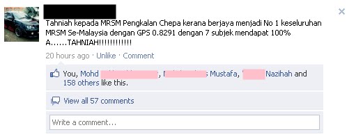 Next aku nak ucap tahniah kepada skolah aku dulu, Mrsm Pengkalan chepa sebab No.1 se-Malaysia. Hebat sgt junior2 skrg nih, 7 subject 100% A..gerun den, but still congratz guys!!!